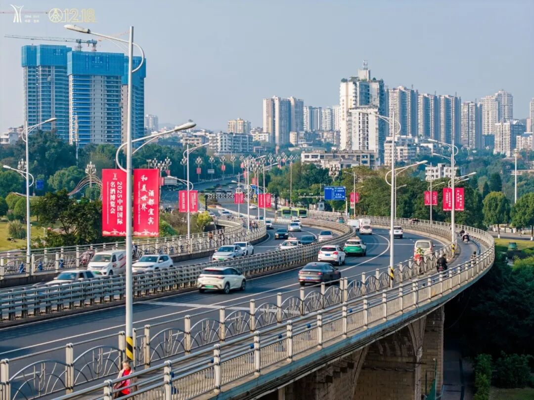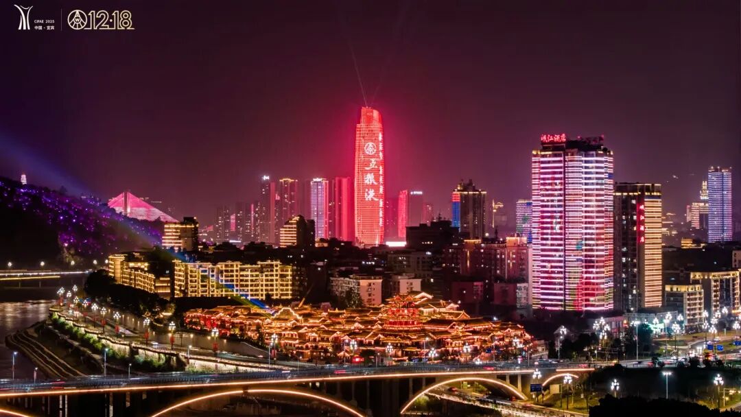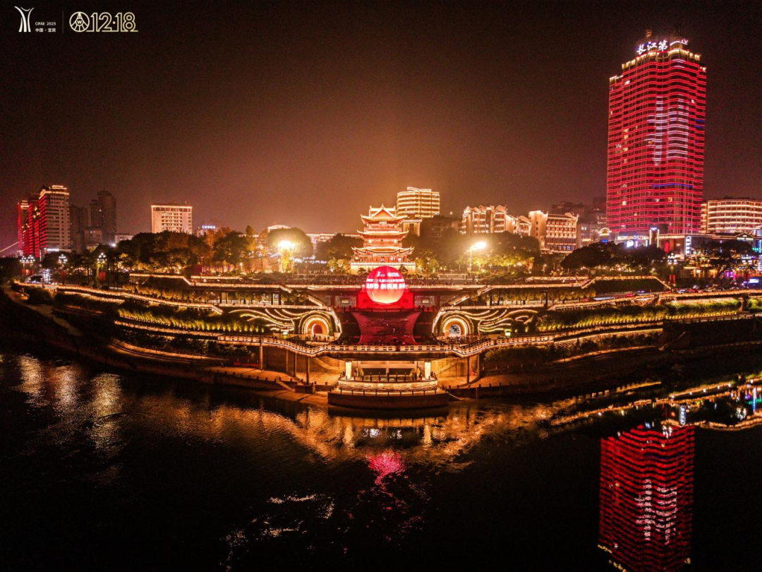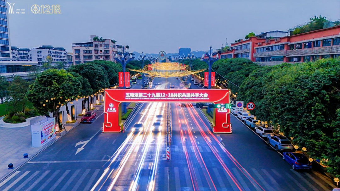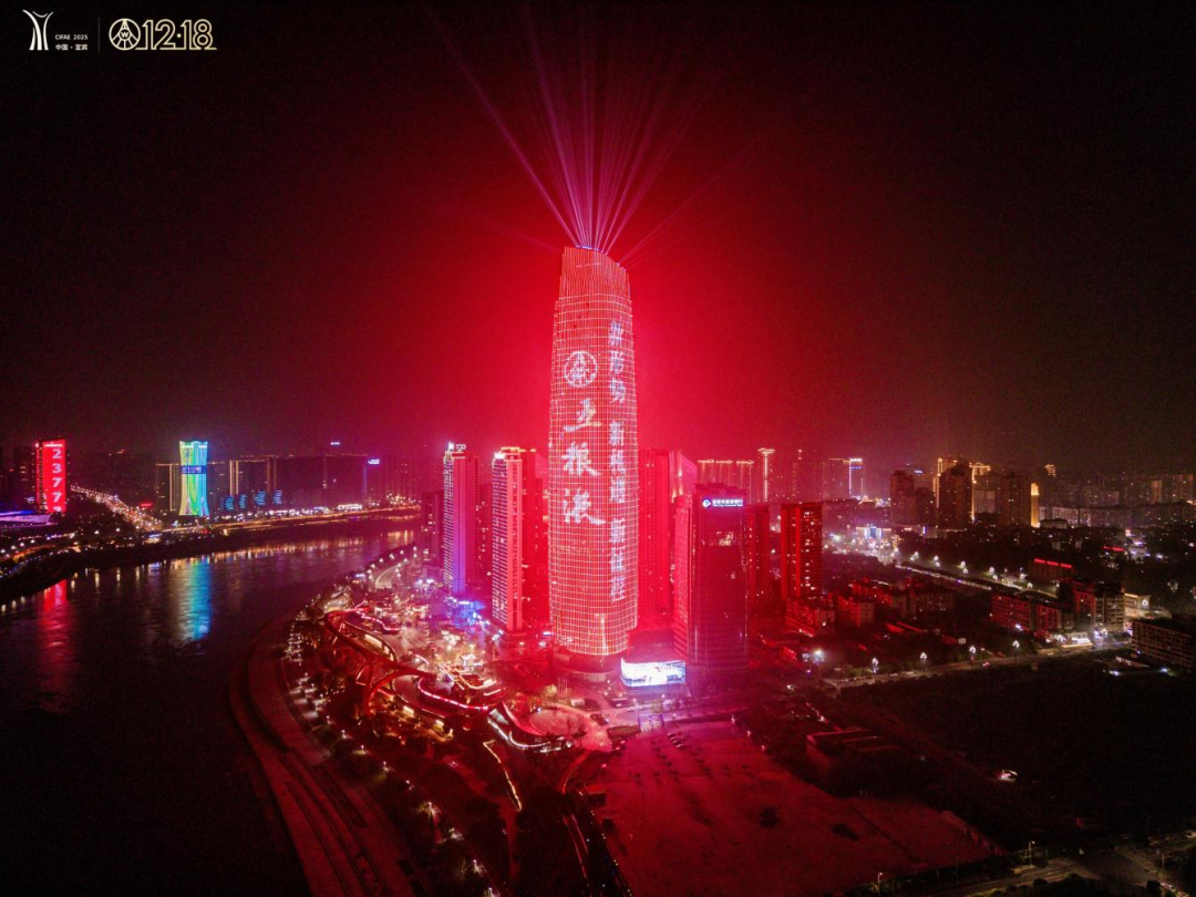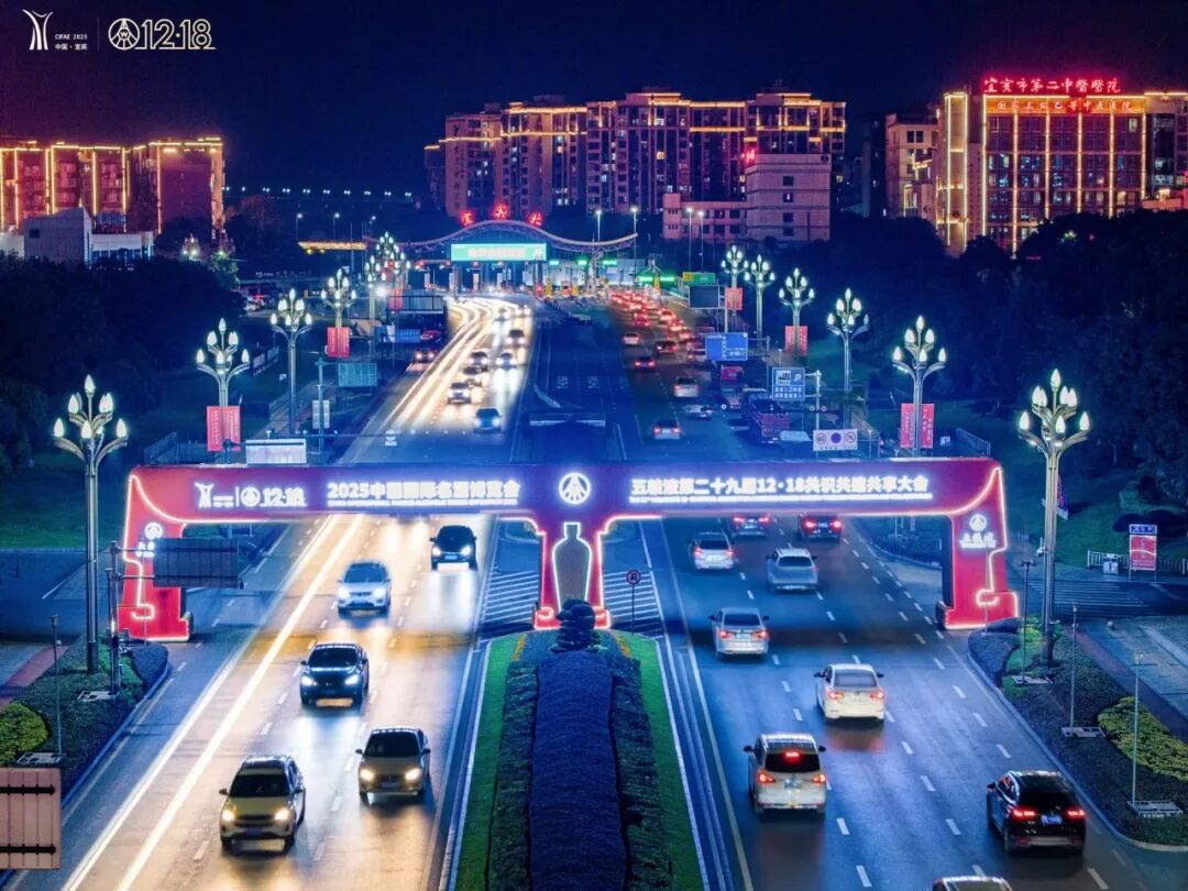 各大商圈的led屏滾動著12·18的消息,夜幕下“三江六岸”的地標建筑上演起絢爛的燈光秀,勾勒出對和美與共的期盼。合江門、五糧液機場、高鐵站等門戶樞紐,2025中國國際名酒博覽會和五糧液第二十九屆12·18共識共建共享大會的主題裝置格外醒目,隨處可見的歡迎語為遠道而來的“家人”送上情濃酒香的溫暖。